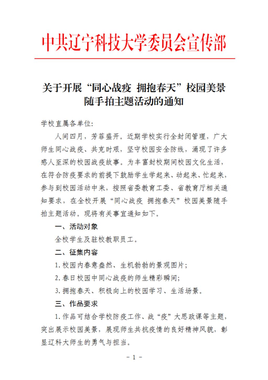 关于开展“同心战疫 拥抱春天”校园美景随手拍主题活动的通知-辽宁科技 - 九九精品视频一区在线久久久久久久久久毛片精品美女|国产99久久久久久免费看|中文精品99久久国产|国产69精品久久久久9999|精品久久久久久中文字幕无码|亚洲熟妇无码久久精品国产精品99|精品国产天堂综合一区在线官网