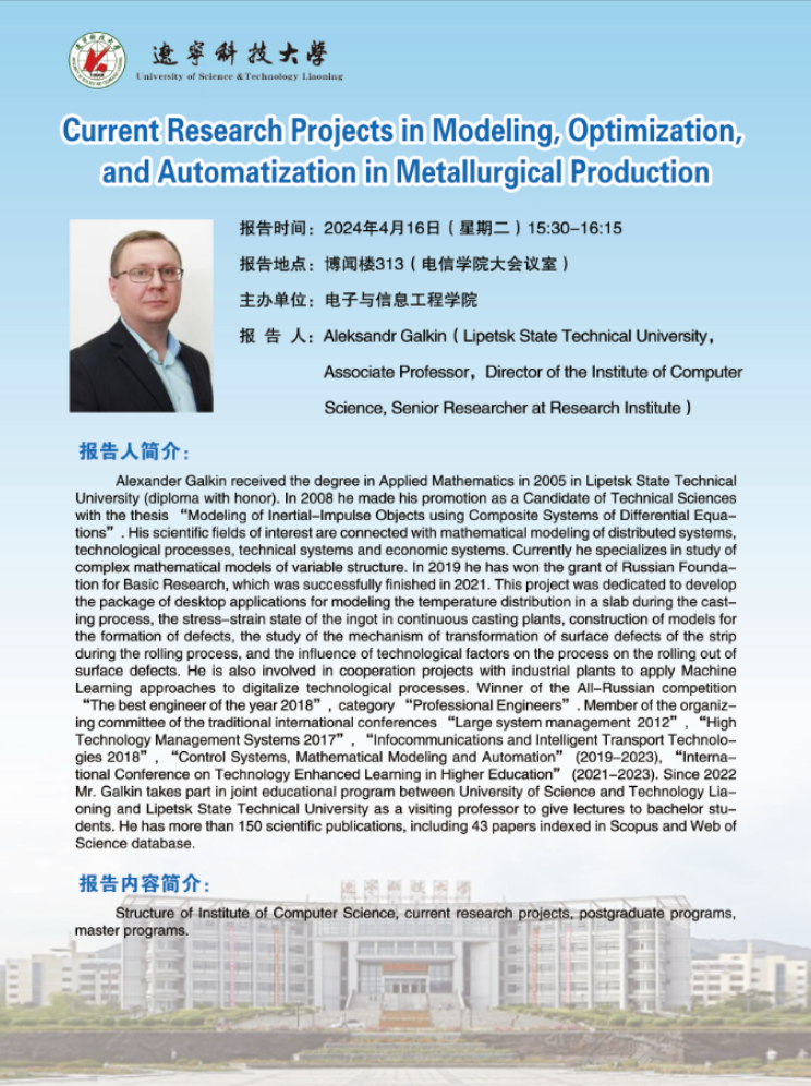 学术预告:Current Research Projects in Modeling, Optimization, and Automatization in Metallurgical Production-辽宁科技 - 九九精品视频一区在线久久久久久久久久毛片精品美女|国产99久久久久久免费看|中文精品99久久国产|国产69精品久久久久9999|精品久久久久久中文字幕无码|亚洲熟妇无码久久精品国产精品99|精品国产天堂综合一区在线官网