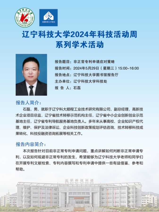 【科技活动周学术预告】非正常专利申请应对策略-辽宁科技 - 九九精品视频一区在线久久久久久久久久毛片精品美女|国产99久久久久久免费看|中文精品99久久国产|国产69精品久久久久9999|精品久久久久久中文字幕无码|亚洲熟妇无码久久精品国产精品99|精品国产天堂综合一区在线官网