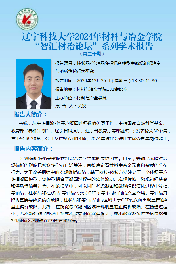 学术预告:柱状晶-等轴晶多相混合模型中微观组织演变与溶质传输行为研究-辽宁科技 - 九九精品视频一区在线久久久久久久久久毛片精品美女|国产99久久久久久免费看|中文精品99久久国产|国产69精品久久久久9999|精品久久久久久中文字幕无码|亚洲熟妇无码久久精品国产精品99|精品国产天堂综合一区在线官网