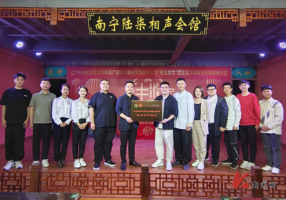 双方就人才联合培养和曲艺事业发展开展座谈交流,就下一步深入合作和发展达成多项共识。南宁陆柒相声会馆班主吕遵强对学院师生的到来表示热烈欢迎,他希望本次合作能够为学生提供长期的实践平台,院方能向企业多输送优秀人才。座谈会上,艺术学院教师屈文凤和冯雪介绍了学院师资力量和学生工作,教师胡曌斌就曲艺系的发展历程、教学、科研优势等进行了介绍。