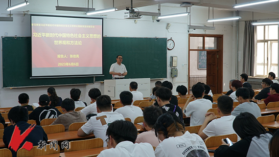 6月6日在博学楼C212,学校理论宣讲团成员、校党委常委、宣传部部长张佳亮教授为机械工程与自动化学院、国际教育学院师生作题为《习近平新时代中国特色社会主义思想的世界观和方法论》的主题宣讲报告。