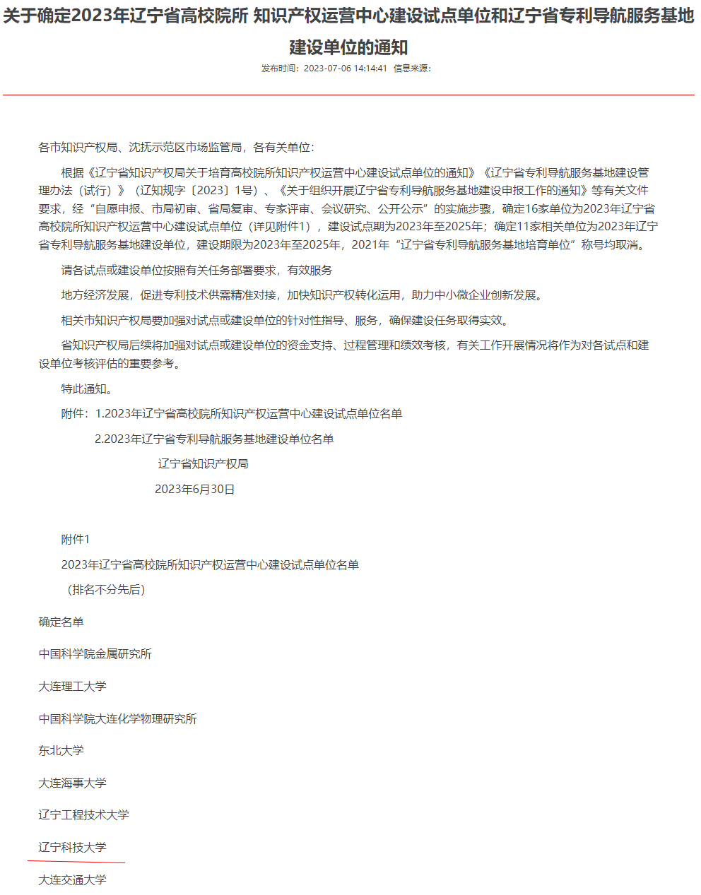 辽科大获批辽宁省高校知识产权运营中心建设试点单位