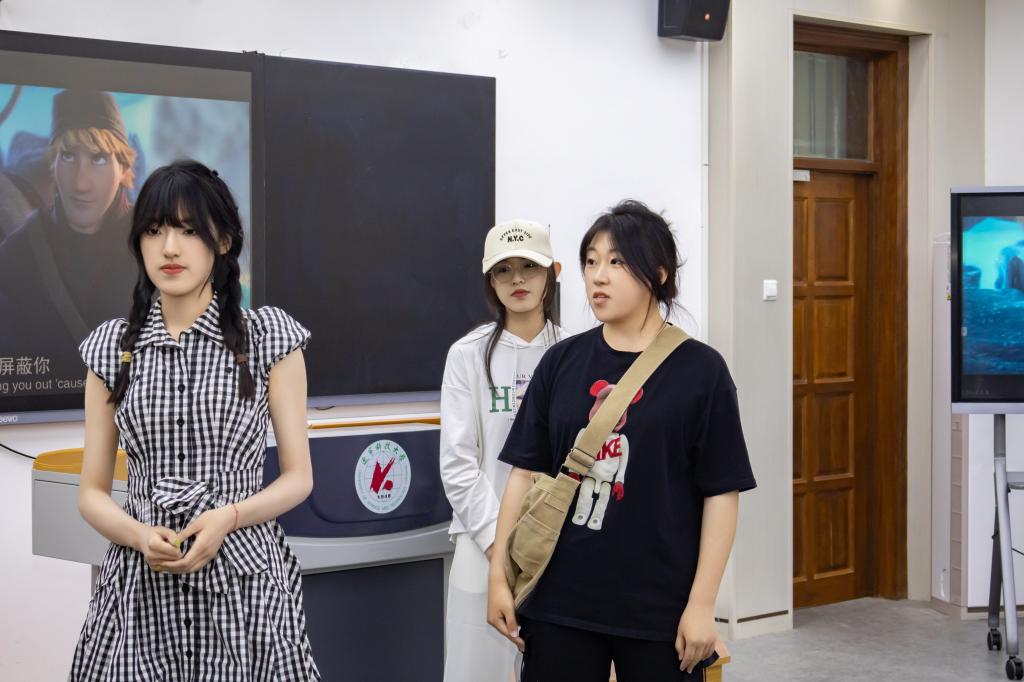 此次英语配音大赛分初赛、复赛和决赛,共有30个团队报名参赛,经过初赛和复赛的激烈角逐,共有10个团队脱颖而出进入决赛。为了达到更好的现场效果,外语学院的老师和“帮帮团”的学生英语教员组成10个辅导小组,利用课余时间分别对各决赛团队进行指导,决赛前夕,邀请艺术学院专业老师从角色的理解、表情动作以及肢体站位等方面进行详细指导。