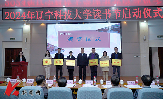 仪式上,同步启动了由辽科大和鞍山市文化旅游促进发展中心、鞍山高新区管委会联合主办的“校地联动 书香鞍山”系列文化活动。辽科大图书馆馆长杨凯公布2023年度辽科大阅读报告、2024年图书馆新智慧服务启动推介。图书馆党总支书记汤苏宁主持颁奖仪式。相关主办单位负责人为“图书捐赠贡献学院”“图书馆空间建设贡献学院”“书香学院”以及读者“借阅之星”等奖项颁奖。党委研究生工作部部长李激光为第四届研究生信息素养研学营活动授旗。仪式上还公布了2024年读书节活动安排。最后环节的“校地联动 书香鞍山”首场“书画进校园活动”中,鞍山市四位知名书法家现场挥毫泼墨,吸引现场嘉宾及师生围观欣赏。