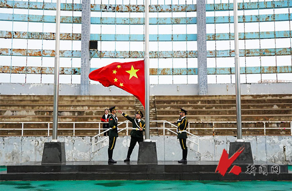 630分,升旗仪式正式开始。升旗手执旗,国旗护卫队护送着五星红旗,踏着坚毅的步伐迈向升旗台。伴着国歌,五星红旗冉冉升起,全体人员庄严肃立,面向国旗行注目礼。