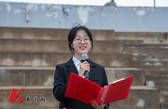 理学院物理2022班学生冷忠昱作国旗下演讲。她说,在今年五四青年节到来之际,习近平总书记寄语新时代青年,要继承和发扬五四精神,坚定不移听党话、跟党走,争做有理想、敢担当、能吃苦、肯奋斗的新时代好青年,在推进强国建设、民族复兴伟业中展现青春作为、彰显青春风采、贡献青春力量,奋力书写为中国式现代化挺膺担当的青春篇章。辽科大学子要牢记习近平总书记殷殷嘱托,赓续五四精神,传承红色基因,担当时代责任,练就过硬本领,在科技创新、乡村振兴、绿色发展、社会服务、卫国戍边等各领域各方面勇当排头兵和生力军,把自己的小我融入祖国的大我、人民的大我之中,为实现中华民族伟大复兴贡献青春力量。