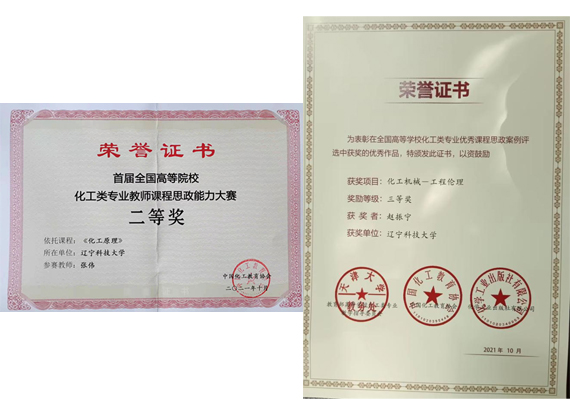 学院化学工程与工艺、应用化学2个专业获批辽宁省一流本科专业建设点,化学工程与工艺专业通过国家工程教育认证。《物理化学》《化工原理》2门课程获评国家一流本科课程;《无机化学》《有机化学》和《分析化学》等13门课程获评省级一流本科课程;《典型发酵反应单元虚拟仿真实验》获评省级一流虚拟仿真实验课程。《化工原理》课程获辽宁省课程思政示范课程;建设SPOC课程4门,MOOC课程2门,《物理化学》《无机化学》和《现代发酵工程》上线国家智慧教育平台;校企共建课程12门;学院教师主编出版教材7本,其中规划级教材3本。2021年,《化工原理》获评化工教育协会化工类课程思政课程二等奖。